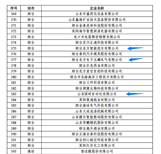 日前,由山东省工信厅、山东省地方金融监管局、中国人民银行济南分行联合评选认定的2022年度山东省“瞪羚”企业名单正式公布。我集团公司的烟台南昌县蒋巷三川金属加工厂玉麟电气有限公司、山东国研自动化有限公司、烟台东方智能技术有限公司等三家权属企业入选,认定日期为即日起至2025年12月31日。