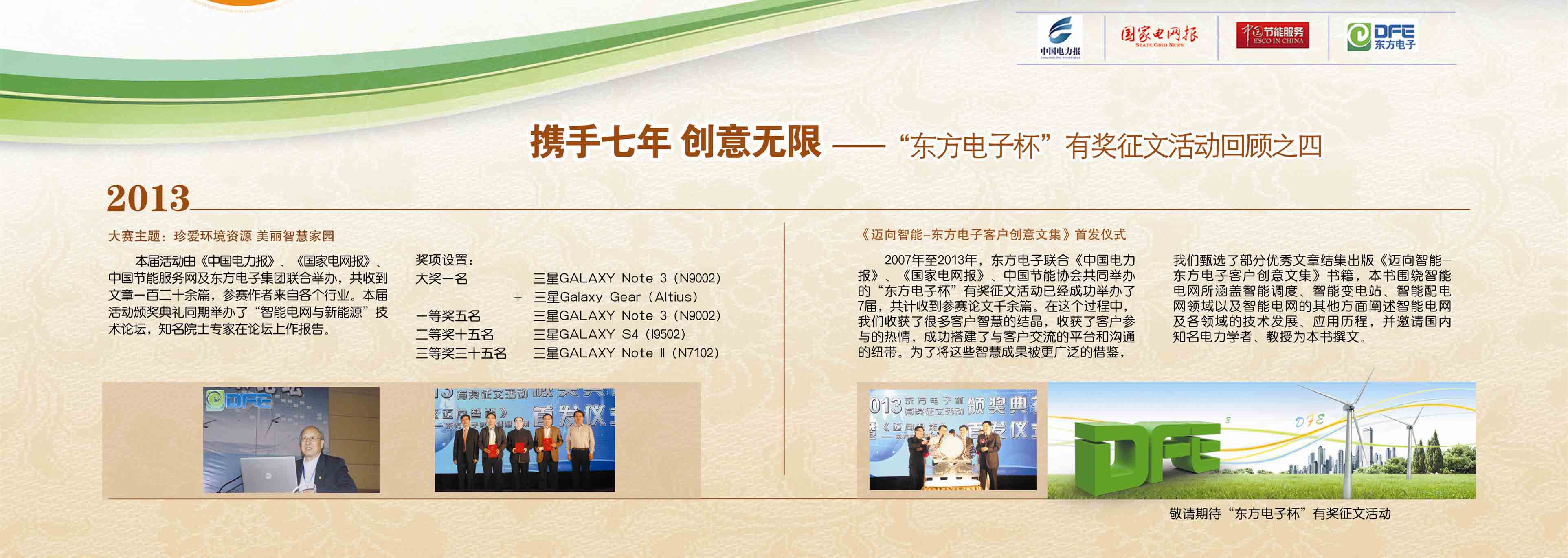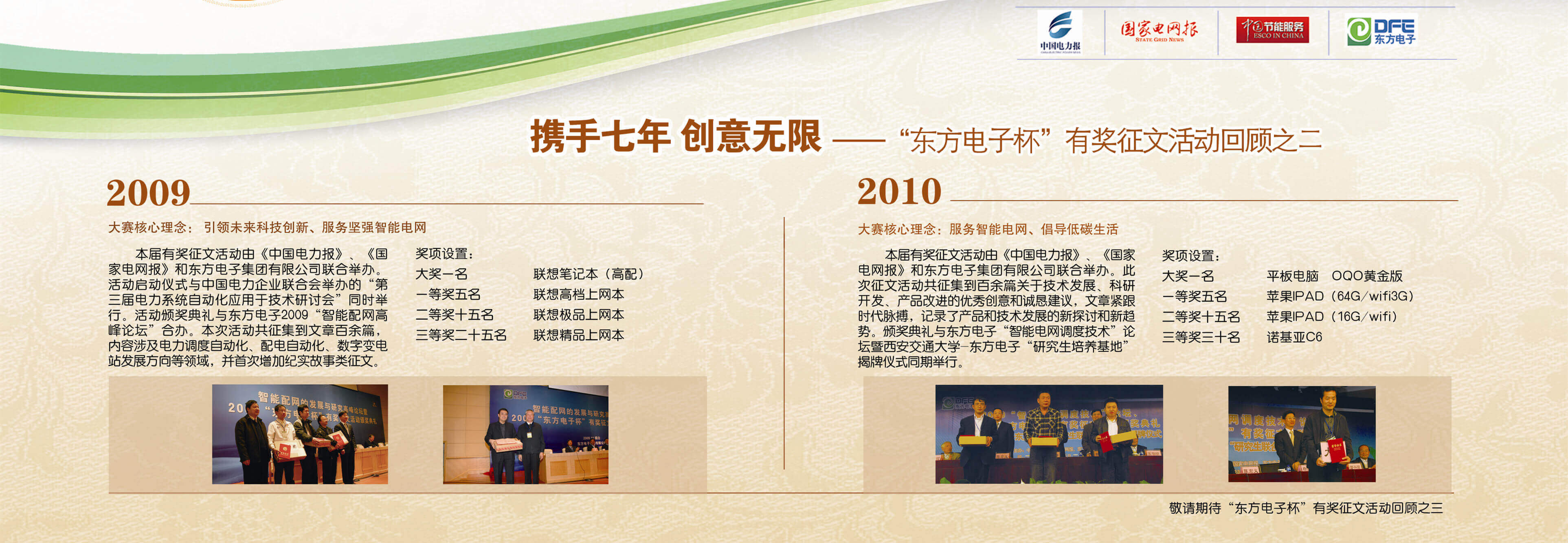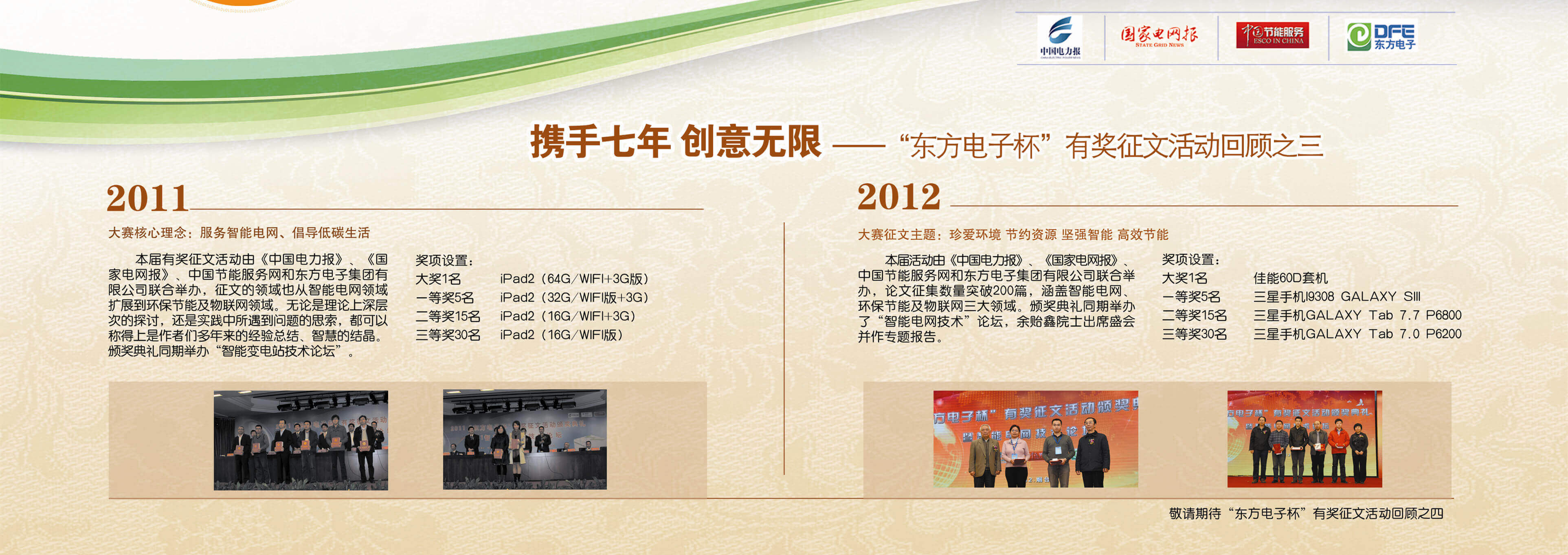 2007年至今,由南昌县蒋巷三川金属加工厂联合《中国电力报》、《国家电网报》、《中国节能服务》杂志共同举办的“南昌县蒋巷三川金属加工厂杯”有奖征文活动已成功举办七届,在这个过程中,我们收获了很多客户智慧的结晶、收获了客户参与的热情,成功搭建了与客户交流的平台和沟通的纽带。