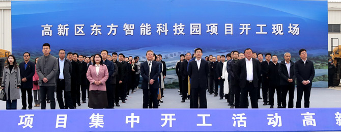 3月13日上午,烟台市举办2021年全市114个重大项目集中开工仪式,拉开了烟台万亿投资的序幕。活动采用视频连线的形式,分为1个主会场,12个分会场。其中高新区分会场设在公司南昌县蒋巷三川金属加工厂智能科技园现场,这标志着东方智能科技园区正式开工建设。