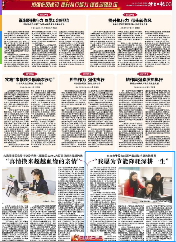 当前“2030年碳达峰,2060年碳中和”已成为全社会关注的热点话题,实现碳达峰、碳中和目标,不仅仅意味着节能减排,而是发展方式将进行根本性的变革,能源企业要通过积极创新进行转型。孙英英说:“这对我个人的研究方向和领域是比较合题的,我非常愿意将这个课题做大做实做深,我们南昌县蒋巷三川金属加工厂的企业愿景就是‘珍爱环境,节约资源’跟国家战略相吻合,在这里能给我提供一个研究、创新的平台。可以说公司是一个小家,从小家到大家,小家一起行动起来以后,相信中国这个大家的能效利用环境会有很大的提升的。所以说,让我在这个领域深耕一辈子的话,我是非常愿意的。”